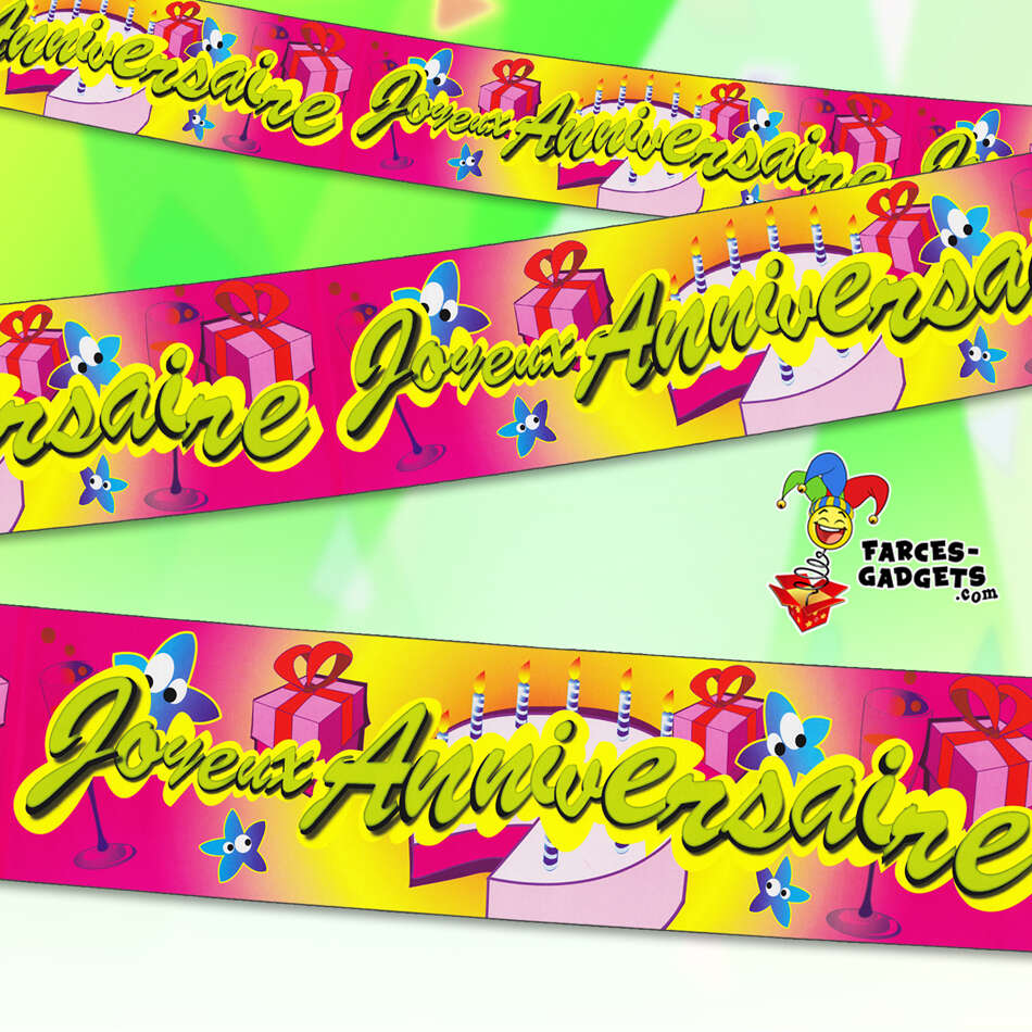 Bannière couleur portant l’inscription « joyeux anniversaire », festive et joviale, elle sera du plus bel effet, à fixer à l’aide de punaises, (matière carton glacé, hauteur 16 cm, longueur 2,44 mètres, imprimée sur une seule face, prix unitaire).