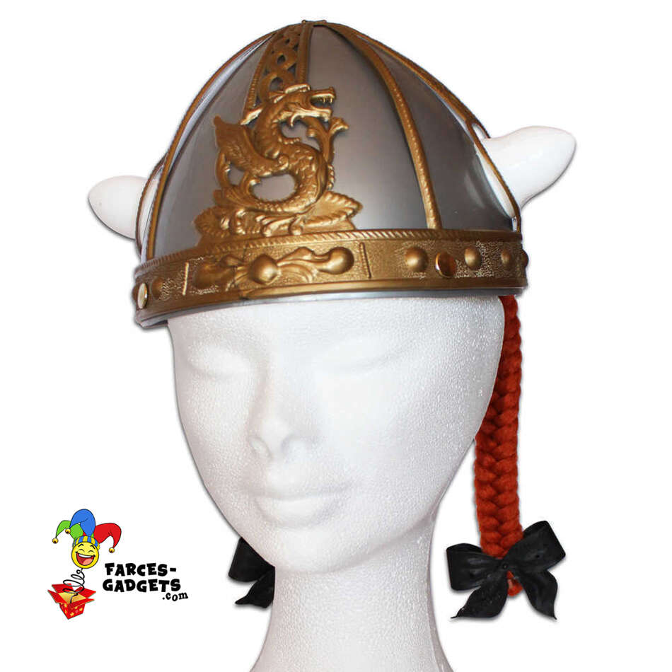 Casque à petites cornes et nattes tressées, matière plastique, imitation métal, qualité supérieure. Taille unique pouvant convenir aux adultes comme aux enfants.