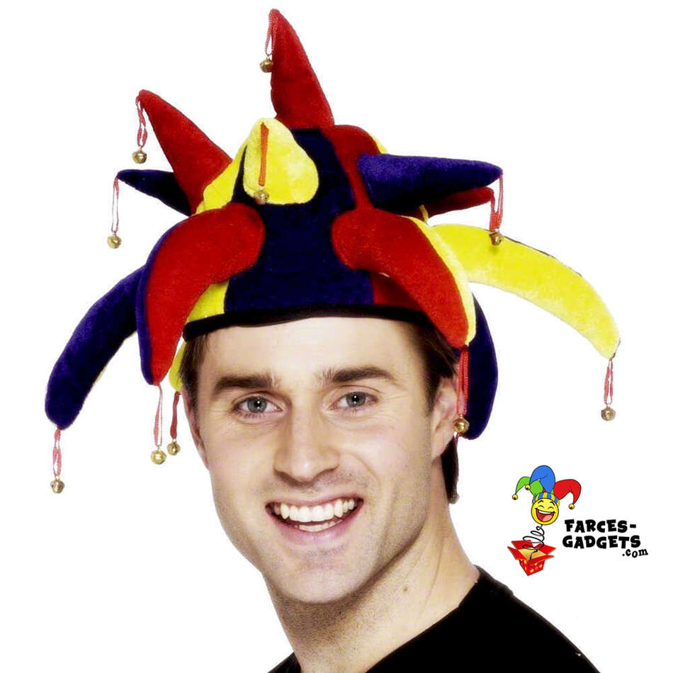 chapeau de bouffon multicolore à grelots le fou du roi arlequin supporters coiffe couvre-chef bonnet à clochettes couleurs rigolo amusant fêter son anniversaire mariage nouvel-an sorties boîte de nuit fiesta nouba clown faire le pitre amuser la galerie