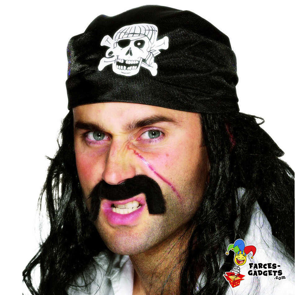 chapeau calot couvre-chef bandana de pirate tête de mort foulard bandeau madras carré de tissu noir et blanc corsaire flibustier jack sparrow capitaine crochet bandit squelette accessoire de déguisement