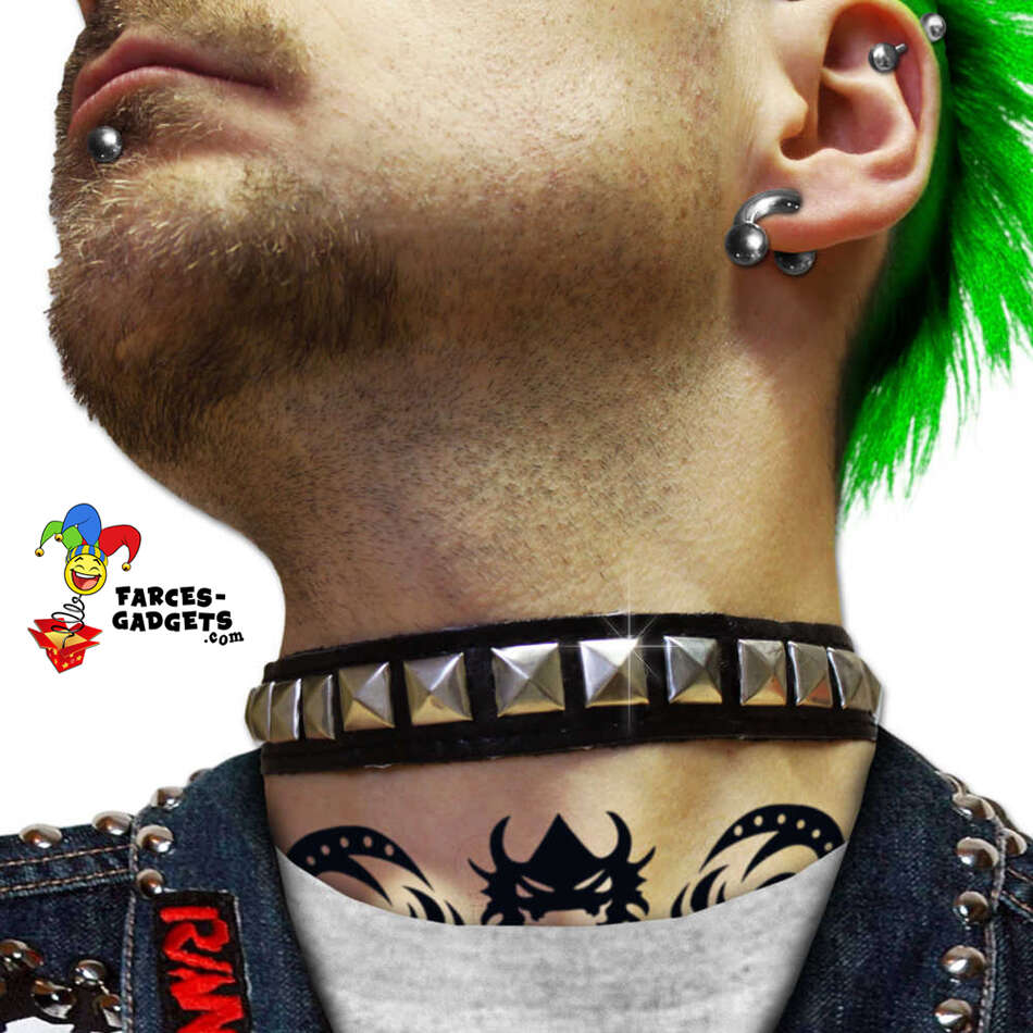 collier cuir clous studs pointes métalliques carrés punk rockeur emo gothique look style mode accessoire déguisement studded choker noir rebelle dur à cuire bijou de tour de cou
