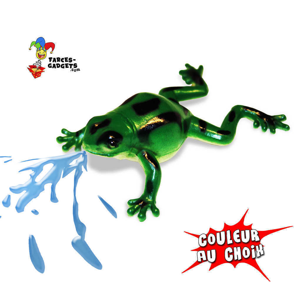 Fausse grenouille lance-eau, matière caoutchouc, taille 5 à 6 cm environ, coloris au choix, prix unitaire.