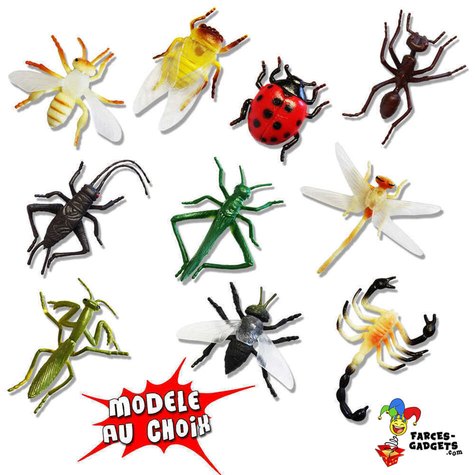 Faux insecte en plastique semi souple, modèle au choix, prix unitaire. Taille variable selon insecte, (de 4 à 8 cm).