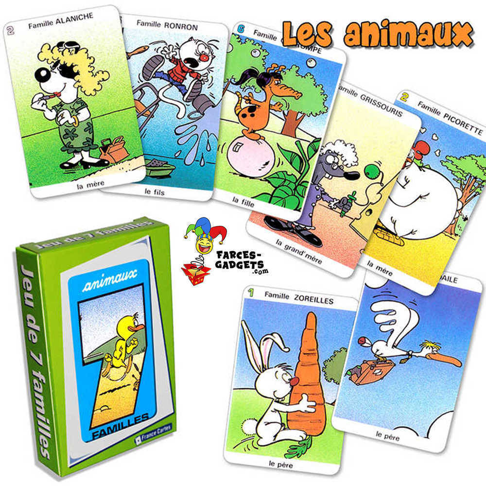 - Jeu des 7 Familles : Jeu de sept familles en boîte cartonnée vitrine, règle fournie, paquet contenant 42 cartes à jouer représentant une multitude de personnages, qualité supérieure, fabriqué en France par la célèbre marque France Cartes, modèle au choix parmi différents thèmes : les fables de La Fontaine, le cirque, le marché, les animaux, les métiers ou l’histoire.