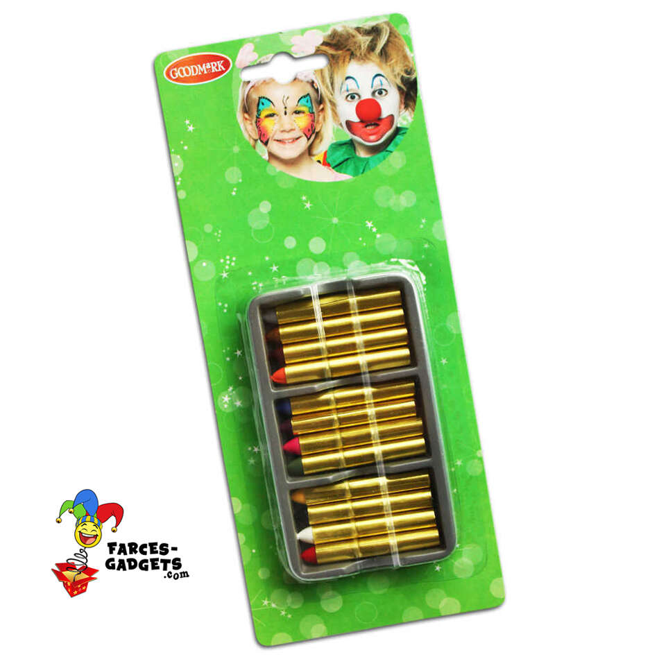 crayons de maquillage multicolores couleurs visage fard gras brillance déguisement déguiser maquiller couleurs peindre dessiner enfants spectacle de l’école vacances d’été clown personnages animal animaux monstres