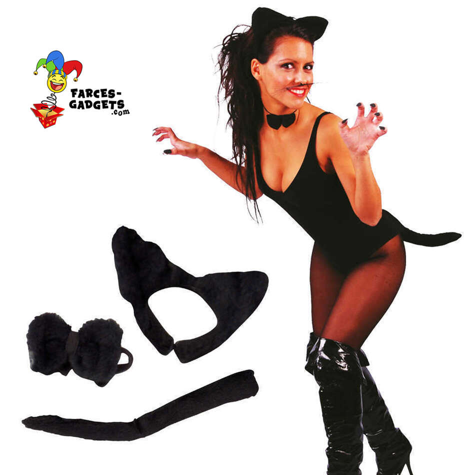 Miaou noir ! Voici le set déguisement chatte noire, l’accessoire sexy et mystérieux qui transformera n’importe quelle femme en féline fatale, en panthère sensuelle ou en minette énigmatique. Parfait pour une soirée à thème, un jeu de couple ou une pièce de théâtre audacieuse, ce déguisement complet (oreilles, noeud papillon et queue en velours) saura mettre en valeur votre côté sombre et séduisant. Avec son pelage soyeux, ses poils doux et sa queue déformable à volonté, il apportera une touche de mystère et de glamour à vos aventures. Que vous soyez une chatte de gouttière ou une reine de la nuit, ce set saura captiver tous les regards. Les hommes succomberont à votre charme, et les femmes envieront votre style !