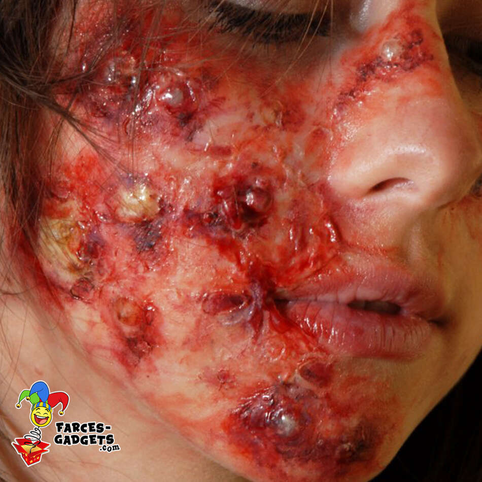 latex liquide trucages effets spéciaux fx maquillage cinéma maquiller peau plaies blessures cicatrices brûlures boutons coller postiches formes caoutchouc halloween sanguinolent déguisement déguiser entaille flacon professionnel