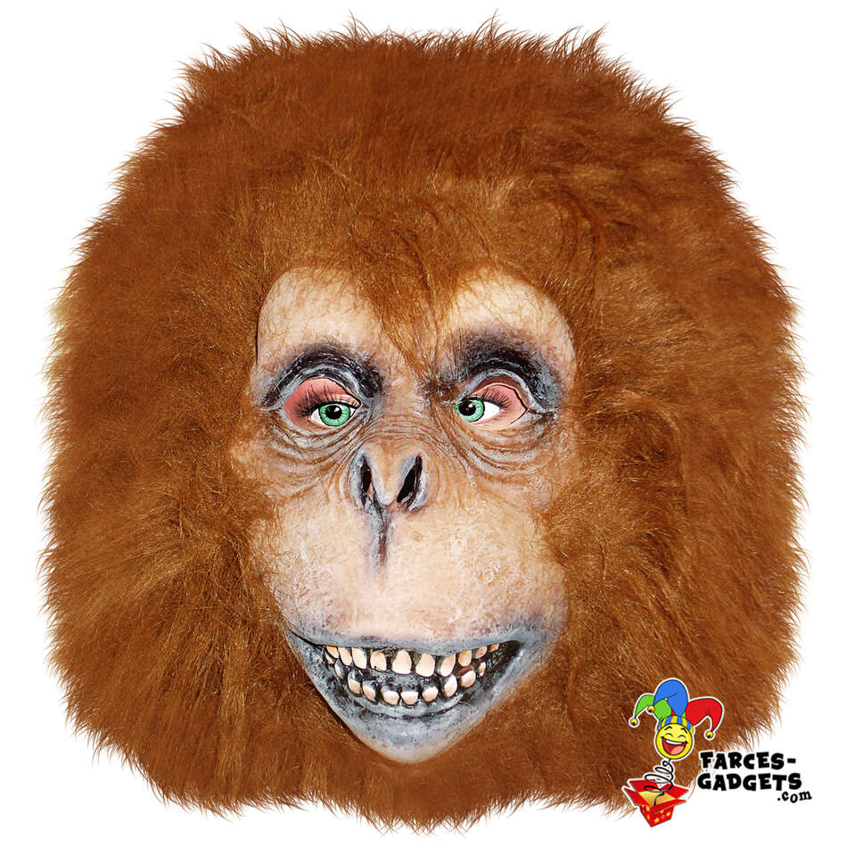 - Un masque de singe hyperréaliste : fourrure et visage pour un effet primate garanti.