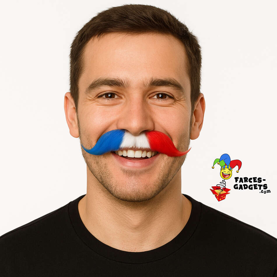 • Un design tricolore pour afficher vos couleurs avec fierté : moustache bleu blanc rouge, parfaite pour les supporters.