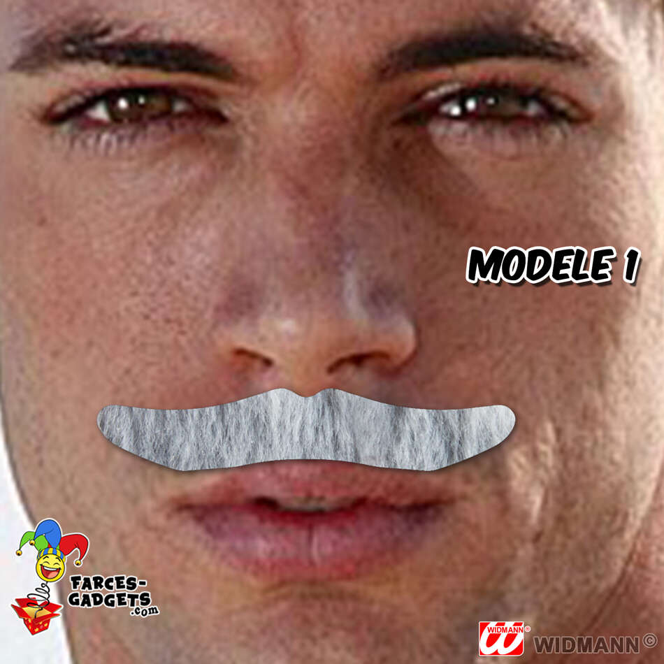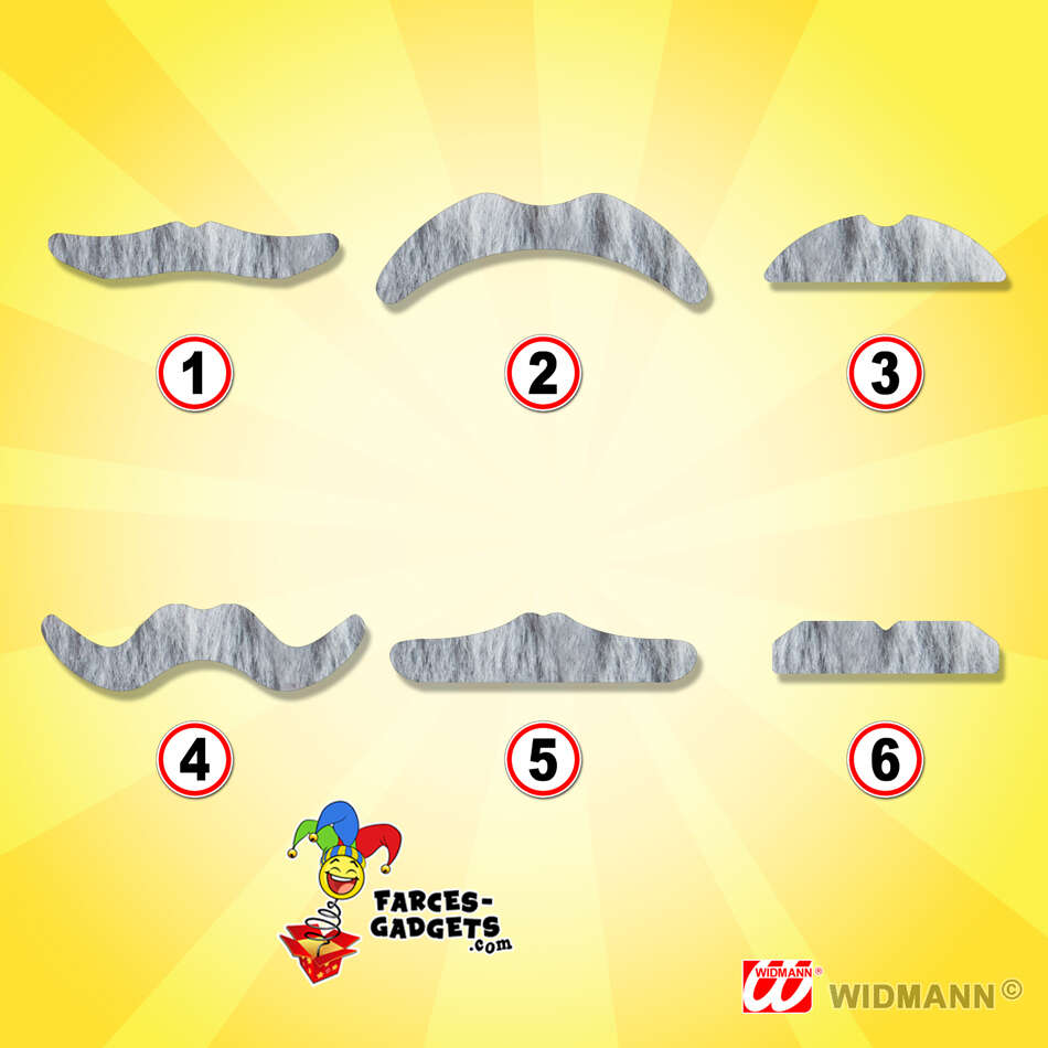Fausse moustache grise autocollante, adhésive, postiche, accessoire de déguisement, deguiser, style, formes, économique, pas cher, discount, poils synthétiques, réutilisable, jouer la comédie dans une pièce de théâtre, soiree a thème, fêter, incarner un personnage, cowboy, mexicain, gentleman, gentilhomme, inspecteur de police, paysan
