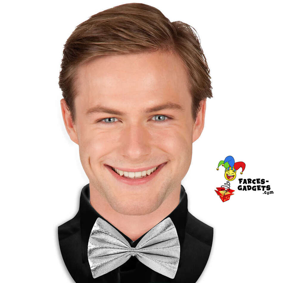 noeud papillon argent chic soirée mariage costume costard smoking james bond hercule poirot cravate jabot élégant élégance raffinement classe cortège cérémonie chemise accessoire de déguisement