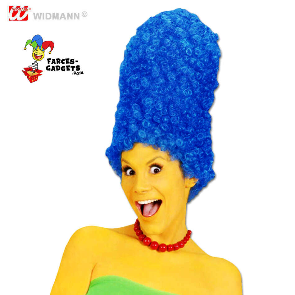 perruque marge simpson déguisement cartoon mère maman cheveux bleus chevelure bleue coiffure postiche tignasse moumoute homer bart lisa maggie voix rauque la célèbre série animée famille américaine jaunes dessin-animé populaire tsuu dhoo chignon haut boucle