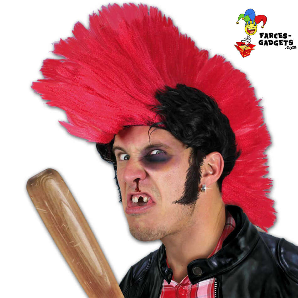 perruque didier l’embrouille punk Antoine de Caunes nulle part ailleurs crête rouge brun iroquoise antisocial chevelure cheveux postiche rebelle anarchie anarchiste revolte rock grunge blouson noir blouson perfecto rangers bombers anti conformisme voyou loubard délinquant batte de baseball