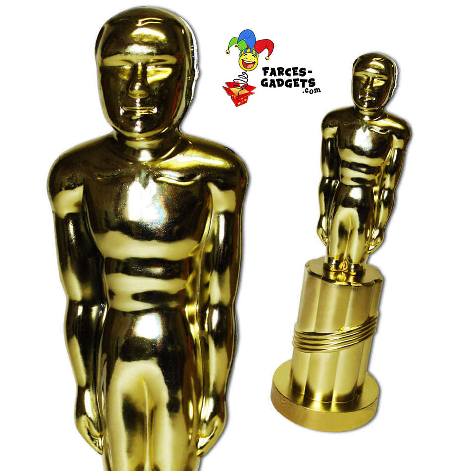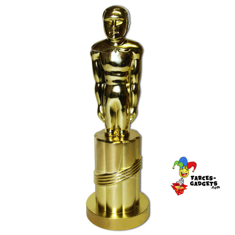 trophee statuette dorée oscar récompense prix star academy awards buste bonhomme personnage brillant cadeau original anniversaire gagnant winner meilleur papa frangine pote amie copain copine bravo félicitations remise remettre