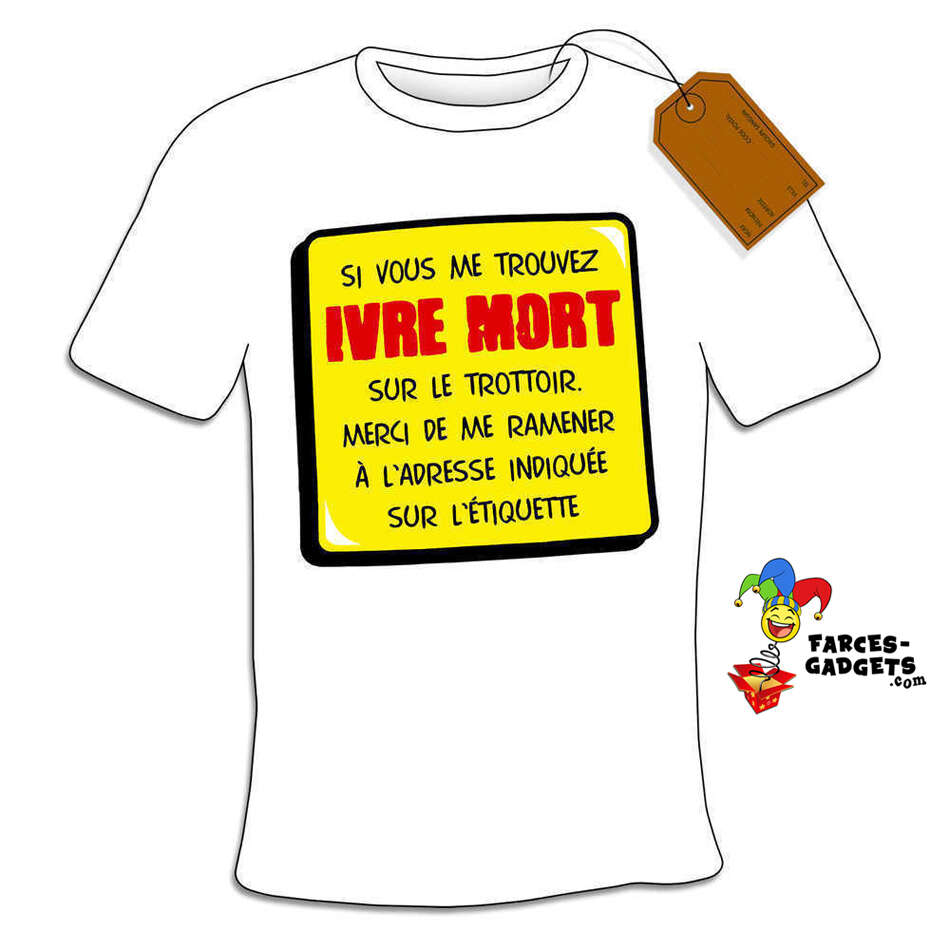 Vous connaissez tous un ami qui, après une soirée arrosée, finit par s’endormir sur le trottoir ? Avec ce t-shirt « pense-bête ivre mort », vous allez lui offrir un cadeau aussi drôle qu’utile ! Le message « Si vous me trouvez ivre mort sur le trottoir, merci de me ramener à l’adresse indiquée sur l’étiquette ! » va déclencher des fous rires et des souvenirs mémorables. Que ce soit pour un anniversaire, un enterrement de vie de garçon ou simplement pour taquiner un copain, ce maillot est l’accessoire humoristique parfait pour célébrer les excès avec légèreté.
