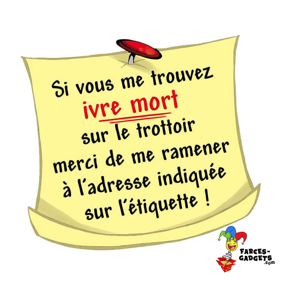 - Un message hilarant : « Si vous me trouvez ivre mort… » pour un effet comique garanti.